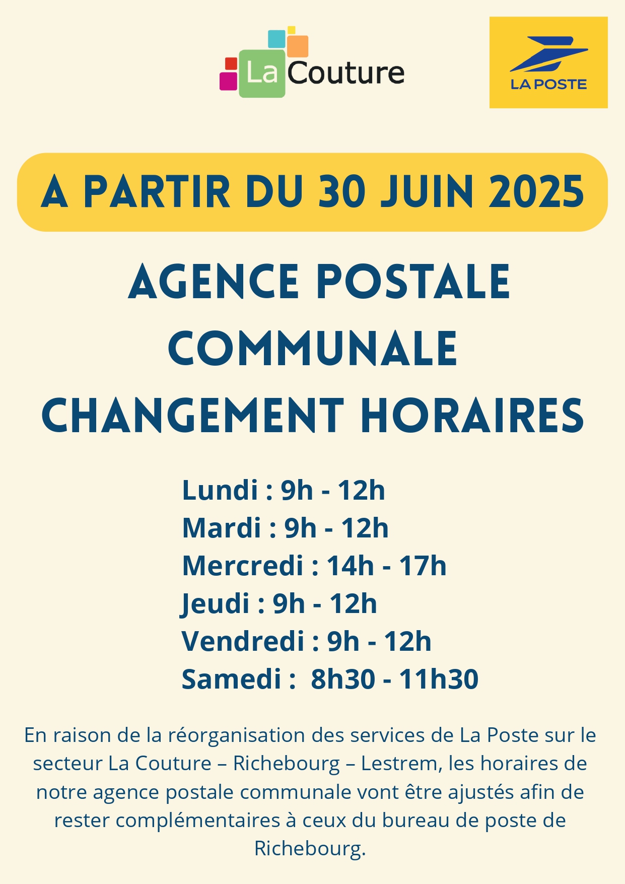 Horaires La Poste